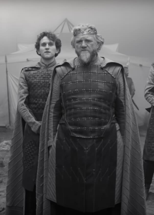 Starring as the titular Macbeth is Denzel Washington. He devours the lines like a seasoned pro. Along with him are three-time Academy Award winner Frances McDormand as his wife Lady Macbeth, Kathryn Hunter as the three witches, Corey Hawkins as Macduff, Harry Melling as Malcolm, and Brendon Gleeson as King Duncan, and in a sinister turn Alex Hassell as Ross. Everybody does a solid job with this difficult material. It’s cool to see Coen got such an amazing cast for the film.