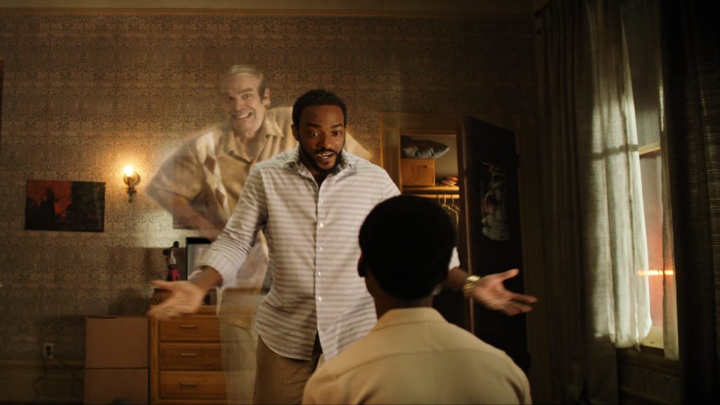 Frank (Anthony Mackie) is a father trying to give his family a new start. So they move from Texas to Oklahoma. They buy a fixer-upper home that has a history to it. The problem is his youngest son isn’t happy with the move. That is until, while playing his guitar in their attic he notices a ghost in the mirror standing behind him. The ghost was dubbed Earnest (David Harbour) because of the name on the bowling shirt he was wearing He becomes of his friend and eventually the entire family.