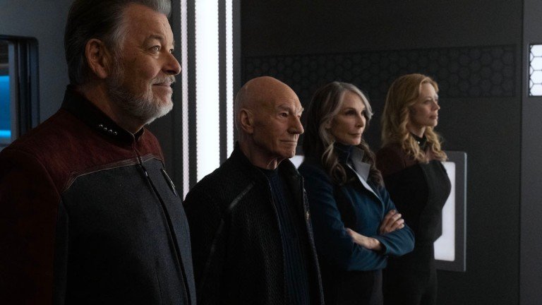 After episode nine the original cast of the USS Enterprise 1701-D had to resort to stealing their old ship from a Federation Museum. The cast who reunited during the season come together to fight what they have realized is the Borg Queen (Alice Krieg). She has lured Jack Crusher (Ed Spaleers) to Saturn where she is hidden in the last Borg ship. While Seven of Nine (Jeri Ryan) and a ragtag crew of survivors try to retake the USS Titan from its Borgified crew which took it as part of a new collective.