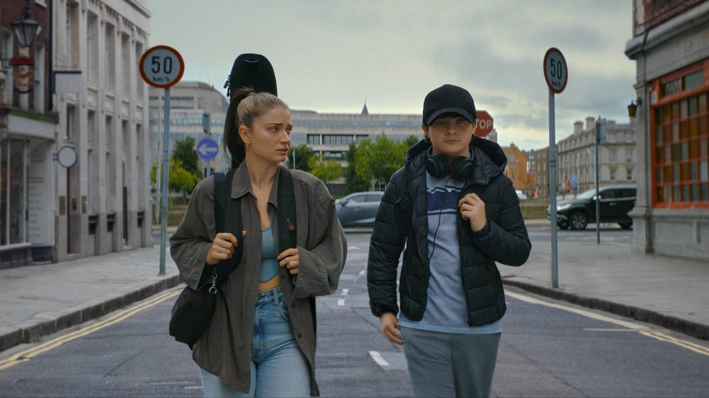 Flora (Eve Hewson) is the single mother of Max (Oren Kinlan), a teen boy who gets into fights and steals things. His father Ian (Jack Raynor) also lives nearby in Dublin, Ireland where they’re from but he doesn’t do much to raise his son the right way. Most of the raising falls to his mother. As a birthday present, she gets her son a guitar. And she hopes to find some common ground between them through music. What happens is she starts to learn how to play the guitar through an instructor on YouTube named Jeff (Joseph Gordon Levitt). Together they all find some therapy in music.
