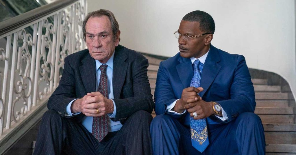 Jerry O’Keefe (Tommy Lee Jones) is the owner of a number of funeral homes and an insurance company in Southern Mississippi. He has a big family and intends to leave the business to his family when he’s gone. He gets into a little bit of financial difficulties and he decides to sell a portion of the business. He gets taken advantage of by a greedy businessman from Canada and doesn’t take it lying down. On the advice of his young counsel, Hal Dockins (Mamoudou Athie), he decides to hire a flashy lawyer from Florida Willie Gary (Jamie Foxx).