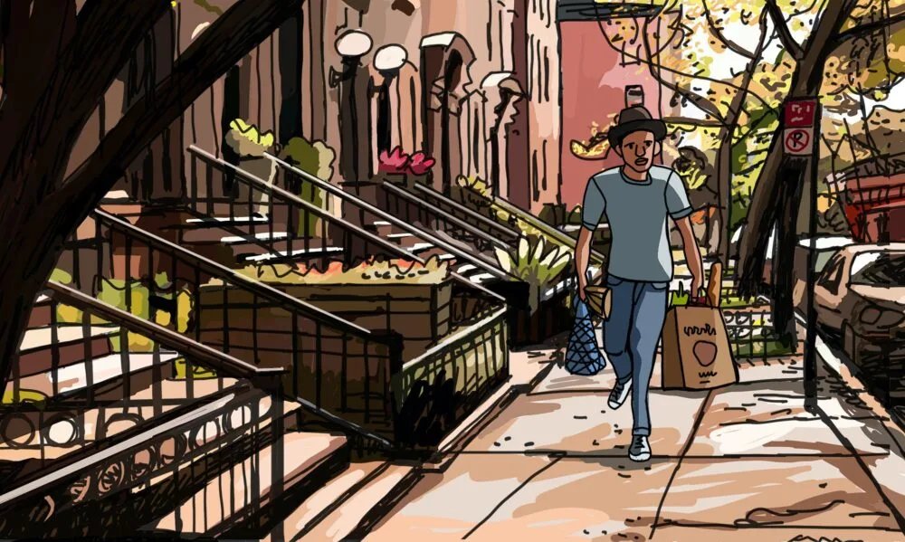 All of these various people are completely animated. The animation is a style I haven’t seen before which makes it quite unique to me. Two specific things about the animation I liked are how each of the people being interviewed all look distinctly different from one another. The other is the backgrounds of various cities, towns, and countryside are all beautifully recreated. This is a very detailed animation on a level I haven’t seen before. There was quite the attention to detail with everything in this film and story.