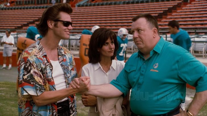 Ace Ventura (Jim Carrey) is a Pet detective in Miami, Florida. He takes every case involving kidnapped dogs, and missing birds but with the Super Bowl in two weeks he lands the case of his life. Snowflake, the Miami Dolphins mascot was stolen. With the help of Melissa Robinson (Courtney Cox), he tries to track down the missing bottlenose dolphin.