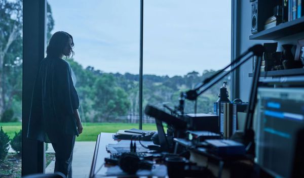 The Interviewer, as she’s referred to, played by Lily Sullivan (Evil Dead Rise) is a podcaster staying at her parents’ isolated home in Australia. She had not properly vetted a source on her last story so she got into hot water. She has protesters outside her place. Looking through her emails she notices that she has an email from a woman about a mysterious black brick.
