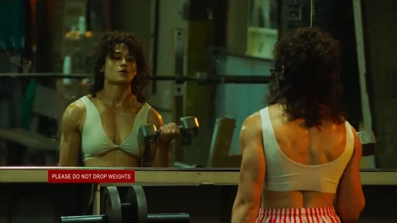 This film is directed by Rose Glass, the woman who directed Saint Maud back in 2019. She does a few stylistic things that set her films apart from other directors. One of those is the sound design. The sound design is so incredible when teamed up with the score they make a formidable part of the film. They are loud and noticeable, especially during violent scenes. When the drama ramps up so does the score by Clint Mansell and the sound design comes along for the ride.
