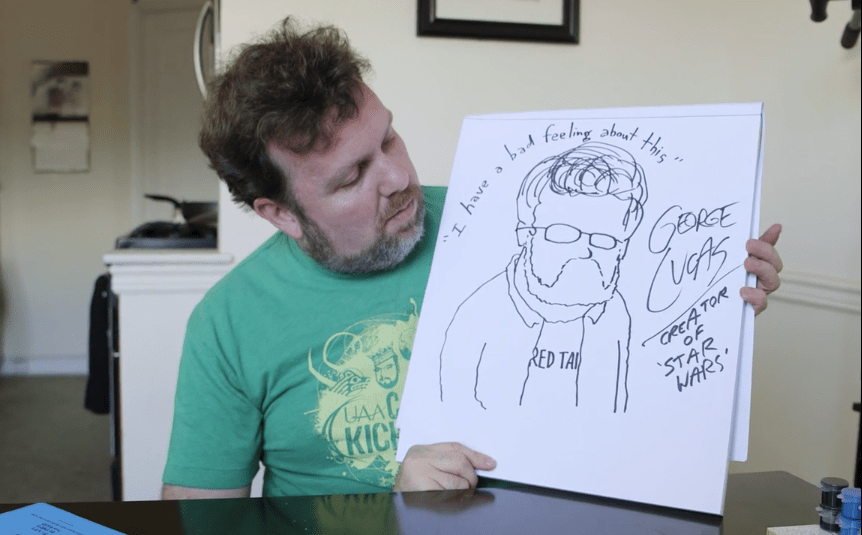 One of those days that will live in infamy for me and I’m sure many other fans of Star Wars is the day I heard in 2012 that George Lucas had sold Lucasfilm to Disney for 1.04 billion dollars. It’s on par with the Moon landing, the assassination of JFK, and 9/11… Just kidding, but it felt like shocking news to me at the time. Well, I wasn’t the only one. Actor/Comedian Connor Ratliff felt the same way. This is why he started doing his own interview show called The George Lucas Talk Show in 2014. Little did he know at the time it was the beginning of a ten-year odyssey playing George Lucus for an audience. I’m “George Lucas”: A Connor Ratliff Story is a film documenting his journey.