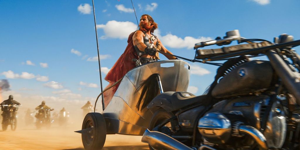 Speaking of Dementus, Chris Hemsworth gave one of the best if not the best performances of his entire career as this man who changes personas from White to red, and Dark. Each persona has a different more deadly mindset than the other. He is dead set on ruling the Wasteland at any cost necessary. He strong-arms his way into Gas Town and feuds with the Citadel and the Bullet Farm. The other two cities that are in the Wasteland. Hemsworth is over the top in the best way possible. He made me laugh and hate him all at the same time. I know this may be recency bias, but he’s one of the best villains I’ve seen in any film in a long time. He’s on the level of Darth Vader, Hannibal Lector, and Heath Ledger’s The Joker. That’s how good I feel Hemsworth is in this movie. He basically steals the movie from Anya Taylor Joy from my perspective. That’s a good thing in the overall context of this film.