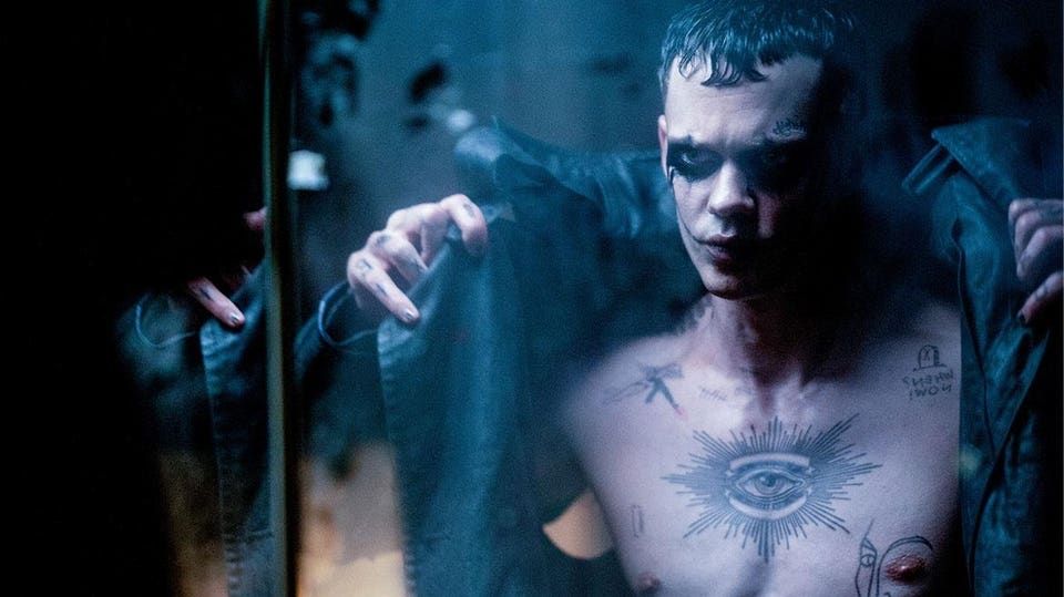 Bill Skarsgård is a talented actor. His roles as Pennywise in It Chapters 1 & 2 and Marquis in John Wick: Chapter 4 prove his acting chops. But his version of Eric Draven is just plain uninteresting; he’s not even called Eric Draven, just Eric. He doesn’t become the proper Crow until about an hour and 20 minutes into this hour and 51-minute film. The rest of the time he plays an insecure goth guy who has copied his fashion sense, Post Malone and Marilyn Manson. There is some implication of a troubled childhood near the beginning and end of the film, but an implication is all that is given.