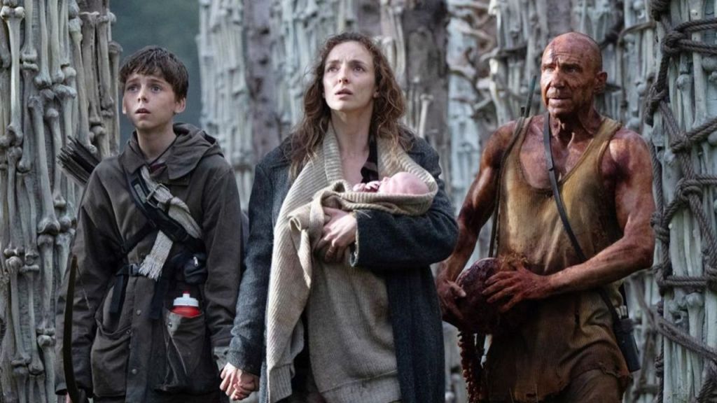 On an isolated island off the coast of Scotland, a community lives peacefully, consisting at a safe distance with the infected on the mainland of Scotland. A father, Jamie (Aaron Taylor Johnson), is about to indoctrinate his son Spike (Alfie Williams) into the world outside their peaceful community. While they leave their sick mother/wife (Jodie Comer) behind. They go to hunt the infected but end up getting hunted themselves. An alpha catches sight of them and chases them back to their secluded island. It’s only a secluded part of the time, though, when the tide is high. This gives the Williams character an idea of how dangerous the world is outside their peaceful instance. He has a thing for trying to get his mother better, though, and that is on his mind quite a lot.