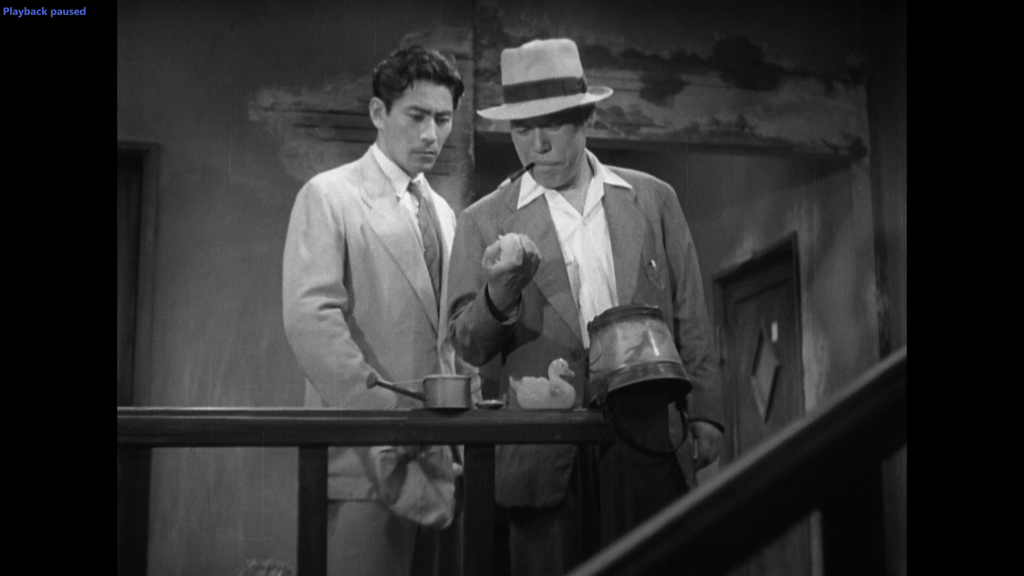 Toshiro Mifune and Takashi Shimura are regulars of Kurosawa’s films. Of Kurosawa’s 30 films, Mifune would appear in 16, and Shimura would appear in 21. They both give very good performances and they have good chemistry with each other. Mifune’s turn as Murakami was especially good and was the most interesting character. Murakami is a homicide detective who earnestly gives his best effort at his job. But his inexperience costs him dearly on more than one occasion.