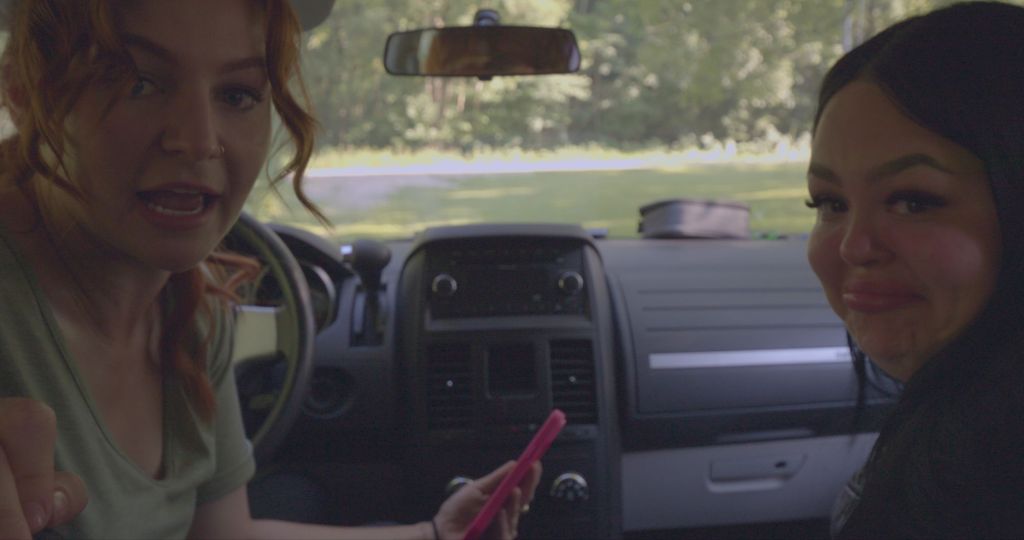 The tiktok channel Kris and Celina runs Spooky AF, and the names they use to do their videos are CallMeKris and Spooky Boo. These are the same names they use for their videos in the film. That means that this movie is semi-autobiographical. It is based on their real lives. With that in mind, I didn’t get a lot about the pair of women in the movie. With any film you want to care about the protagonist, in this case three people, but the film barely gives viewers any information about them for us to develop an interest in them or so we can care about them. I truly didn’t care what happened to them because the story didn’t show me enough to do so. I wished it had.