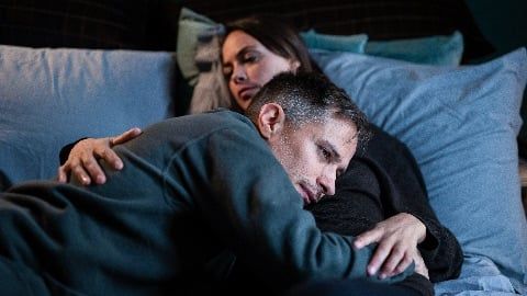 Even though there was a connection that the Garcia Bernal character made with the sex worker I still want to talk about the part where he wasn’t connecting with the other surrogate his deceased wife’s memories were put into. These two tried connecting with each other on the level a husband and wife should. They hung out at night on the couch, watching movies on their projector and eating popcorn. They ate Chinese food for dinner because her memories had that in her mind to do. It just tells you that even though there is that connection, it doesn’t mean it’s going to work in the end. A marriage and romantic relationship takes time and effort to cultivate.