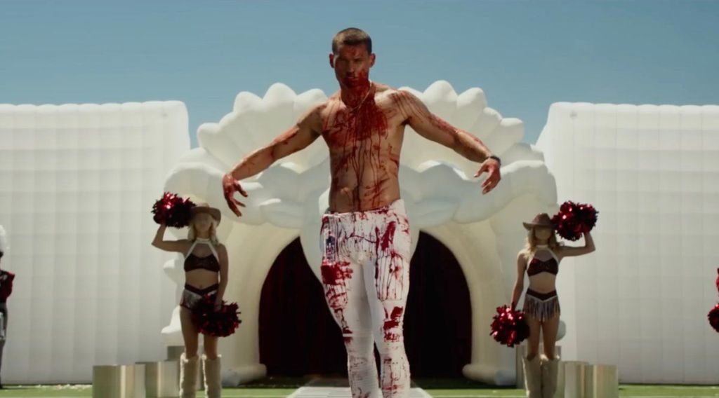 Director Justin Tipping, along with co-writers Zack Akers and Skip Bronkie, presents a specific vibe to this sports horror story. Its fast editing and incredible score give a good dosage of craziness of the wild visuals with plenty of blood, gore, and violence. There was so much in this ninety-five-minute film that I couldn’t catch it all, even though some of its obvious symbolisms don’t hit the mark. Comparing a quarterback to Jesus was a stretch, but to some people, like us Patriots fans, Tom Brady is an example of this. Sports fans put these players on pedestals, and it can be an adrenaline rush, though, for some kids who need something to strive for. Tipping gets to the point of what it all means, even though it will have gone over some people’s heads.