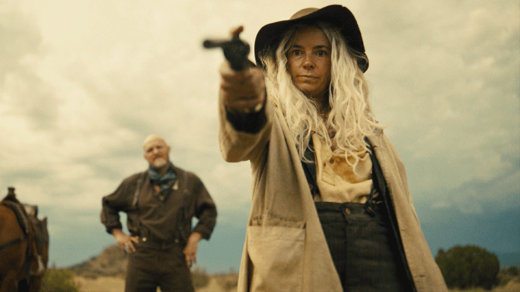 Two other character actors I want to mention are Pearce and Pullman. Pearce has been doing great work lately in films like The Brutalist and The Shrouds. Some of his older stuff in The Proposition, Memento, and The Count of Monte Cristo were the films of his that I gravitated towards most. He brought gravitas towards his roles. Sometimes, he takes roles in movies like this one that are completely different from other things he has done. Sure, he’s been in Westerns before, but not like this one, though. He is a bit of a crazy character. He’s half drunk even though he says he doesn’t drink. The world around him is crazy. The journey he goes on with this woman and her child is just to make some money. It’s a lot to get into for money. I’m glad he’s not doing the same things all the time.