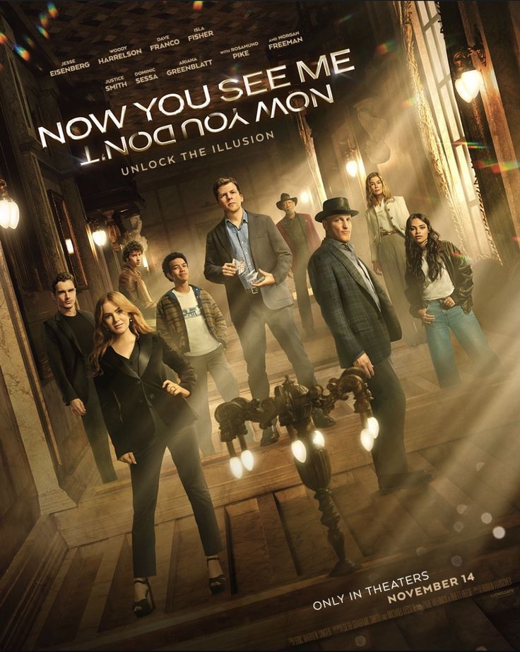 “Now You See Me: Now You Don’t” sees the return of the world-renowned Four Horsemen, the group of magicians the steel from the corrupt and give back to the people. After recruiting a group of copycat magicians, they band together to perform their latest magic trick; a diamond heist from a criminal organization. Jesse Eisenberg, Woody Harrelson, Dave Franco, Morgan Freeman and previously absent and now returned Isla Fisher all return in this new installment along with some new faces including Justice Smith, Rosamund Pike, Dominic Sessa, and Ariana Greenblatt.