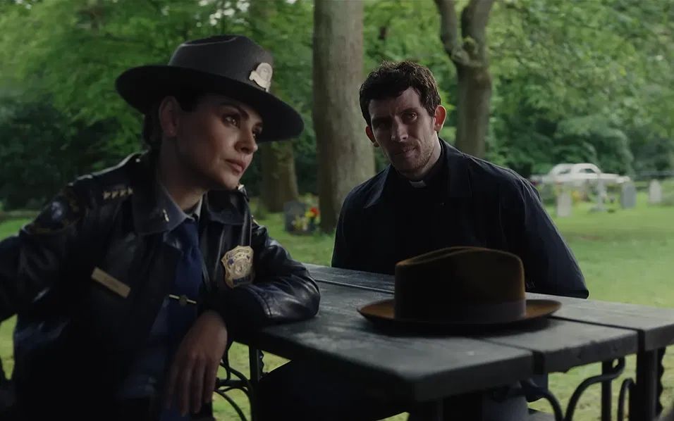 Though Benoit Blanc is the glue that holds these movies together, this movie is also a little different than the other two as it has a main character above Blanc: Josh O’Connor’s Rev. Jud Duplenticy. Uncharacteristically, this movie also allows almost the first hour to go by without showing you Benoit Blanc. From the top, it’s Rev. Duplenticy’s story and Josh O’Connor commands so much presence by his portrayal of the young and conflicted priest that you can’t help but be enthralled from the beginning. Rev. Duplenticy is a reformed former boxer turned priest whose goal is to bring hope and faith to those around him and help save them from the darkness that had swallowed him as well. So naturally, the film begins with this young priest punching a deacon in the face. This gets him sent to Our Lady of Perpetual Fortitude to work as an assistant pastor under the parish leader, Monsignor Jefferson Wicks. This is where our story truly starts.