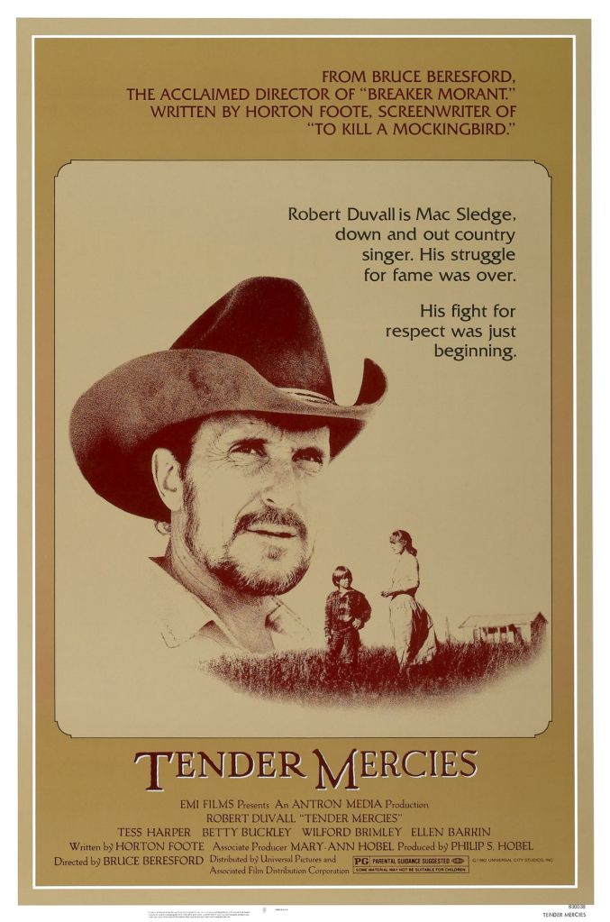 Robert Duvall came on the scene in Hollywood when he played the shy yet spooky Boo Radley in “To Kill A Mockingbird” The Pulitzer Prize-winning novel from author Harper Lee turned major motion picture. Since then, he has had notable roles in the Godfather franchise as Tom Hag, the consigliari/lawyer to Don CoCorleone (Marlon Brando). and he played Lt. Colonel Bill Kilgore, famous for the quote “I Love the Smell of Napalm in the Morning”, in Apocalypse Now, both directed by Francis Ford Coppola and in The Great Santini as Bull Meachem. Along with roles in THX 1138 from director George Lucas and many other performances as well, I think the best performance of his career is as Mac Sledge in Tender Mercies.