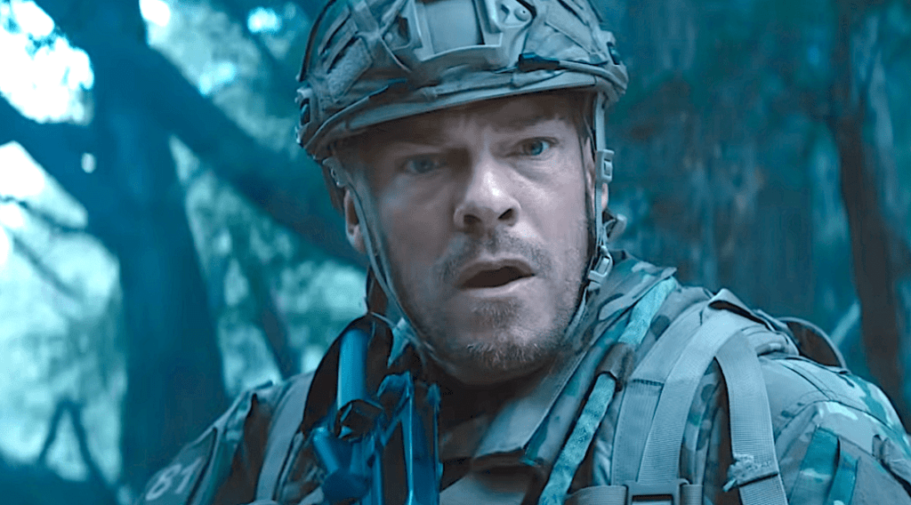 There are two distinct halves of this movie, one set in a realistic world of military operations and trying exercises, and the other is a final mission on a mountainside with a river and wilderness. Constant news reports allude to a sci-fi element in this film. A force that the trainees have to fight against and also try to survive against for lack of a better word. They are literally in a fight for their lives where usually these training exercises are meant to be that way. They are meant to be realistic but not this real. This otherworldly force is pretty formidable, to say the least, but this half of the film felt unrealistic to me in the context of the film. These aspects took me out of the movie. If it were a real war scenario, I would have been more apt to believe what was going on in these scenes.