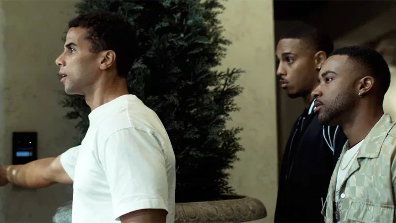 Three friends (Mason Gooding, Algee Smith, and Kieth Powers) in Texas decide to go out on the town. They were planning on meeting some female friends in another town from where they live, but on the way there, they hit gridlock on the highway. Their GPS shows them a shortcut around the traffic, so they choose to go in that direction. It takes them to a gated community where they need a pass code to get in. A woman who happens to be going on gives them the code so they can get in and go through. As they were driving around to find the exit, they witnessed the woman in red getting beat up by a man in black inside one of the houses. She falls and hits her head on a fireplace. She looks dead, but the men make a noise outside the house, and the man inside sees them. This leads to a chase. The young men run around the community to try and find help, but this other man is a pillar of the community as the local pastor of the church.